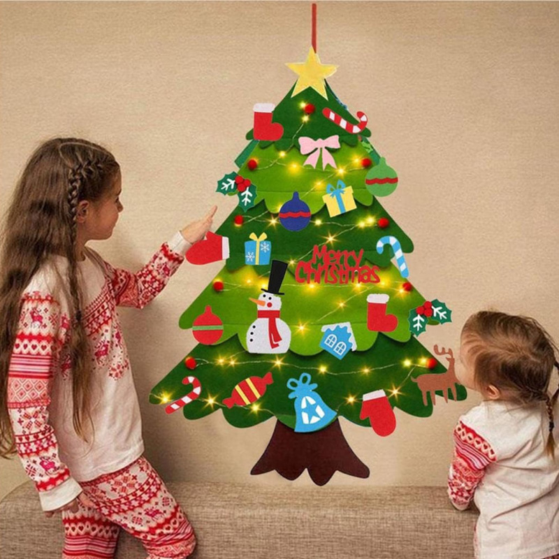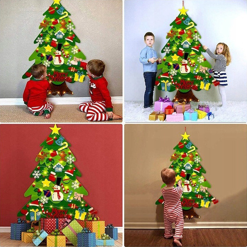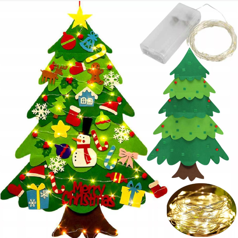 Jeho rozmery 100 × 70 cm sa ideálne hodia do detskej izby alebo škôlky, kde môže slúžiť ako ozdoba na stene. Súčasťou balenia je trojmetrová LED reťaz s 30 svetielkami, ktoré dodajú miestnosti vianočnú atmosféru. 26 farebných ozdôb na suchý zips umožňuje deťom voľne meniť a dekorovať stromček podľa vlastnej fantázie.