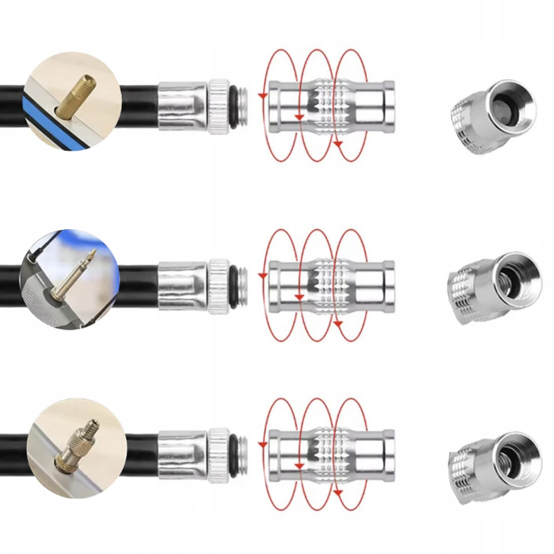 Ručná bicyklová pumpa je kompatibilná so všetkými typmi ventilov, čo ju robí vhodnou pre väčšinu bicyklov a kolobežiek.