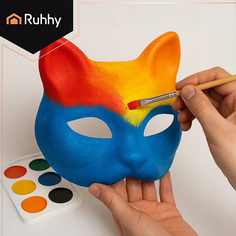 Kreatívna zábava pre deti aj dospelých – masky Mačky určené na maľovanie s gumičkami, ideálne na karneval, halloween alebo tematické párty!